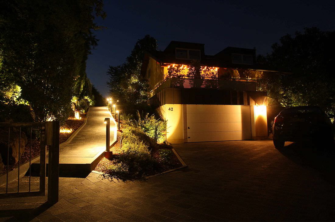 Als Lichtplaner aus dem Bergischen Land sind wir schnell vor Ort und bemustern Ihre Beleuchtung live im Dunkeln – direkt in Ihrem Garten, bevor Sie sich entscheiden.